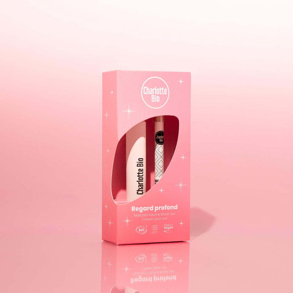Das Duo Regard Set enthält 2 unverzichtbare Produkte für Ihre Make-up-Routine: die Mascara Volume Boost Naturel und den Augenkonturenstift in einem schwarzen Farbton.