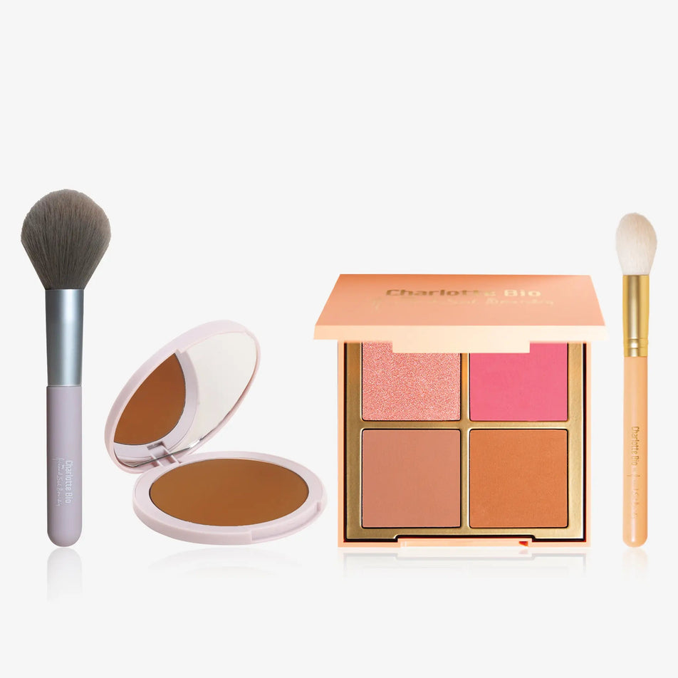 Entdecken Sie das Beauty-Set Arnaud Sol Dourdin x Charlotte Bio, dasideale Set für ein komplettes und strahlendes Make-up. Dieses Set enthält die 4-in-1-Palette Bonne Mine (Rouge, Bronzer, Highlighter und Konturenstift), mit der Sie Ihr Gesicht in einer einzigen Geste modellieren und zum Strahlen bringen können.