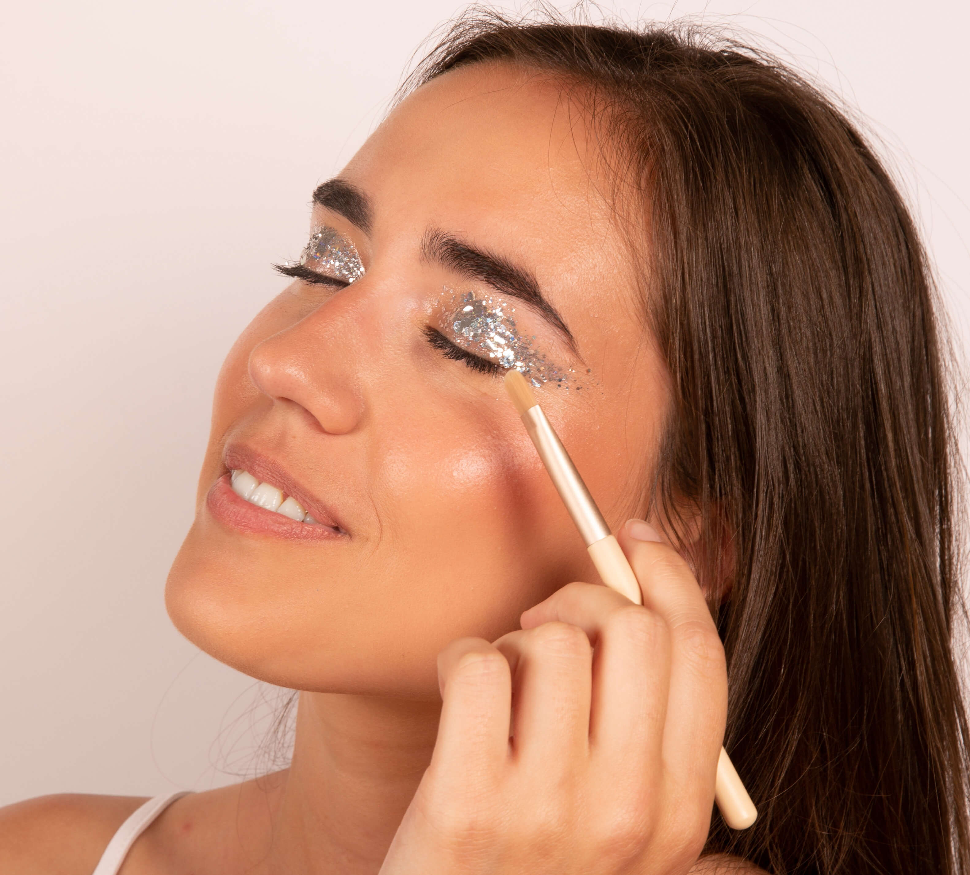 Sie können ihn mit dem Finger oder einem Pinsel auftragen. Seine cremige Textur lässt sich leicht auf Ihrer Haut verteilen. Wenn Sie Glitzer für ein festliches Make-up auftragen möchten, ist der Sheabutter-Balsam ideal, um den Glitzer bis zum Ende der Nacht zu fixieren!