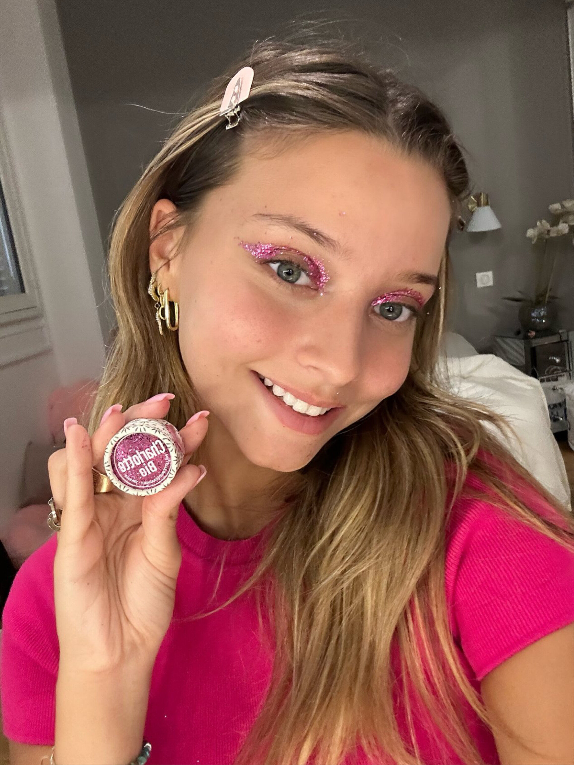 Als ersten Schritt tragen Sie unseren Zauberbalsam mit dem Pinsel auf den Bereich auf, den Sie schminken möchten. Nehmen Sie dann mit dem Pinsel ein paar Glitterpartikel auf und geben Sie sie auf den Bereich Ihres Gesichts oder Körpers, der mit dem Zauberbalsam bedeckt ist. À appliquer sur le visage et/ou sur le corps, c’est magiiiiiiique !