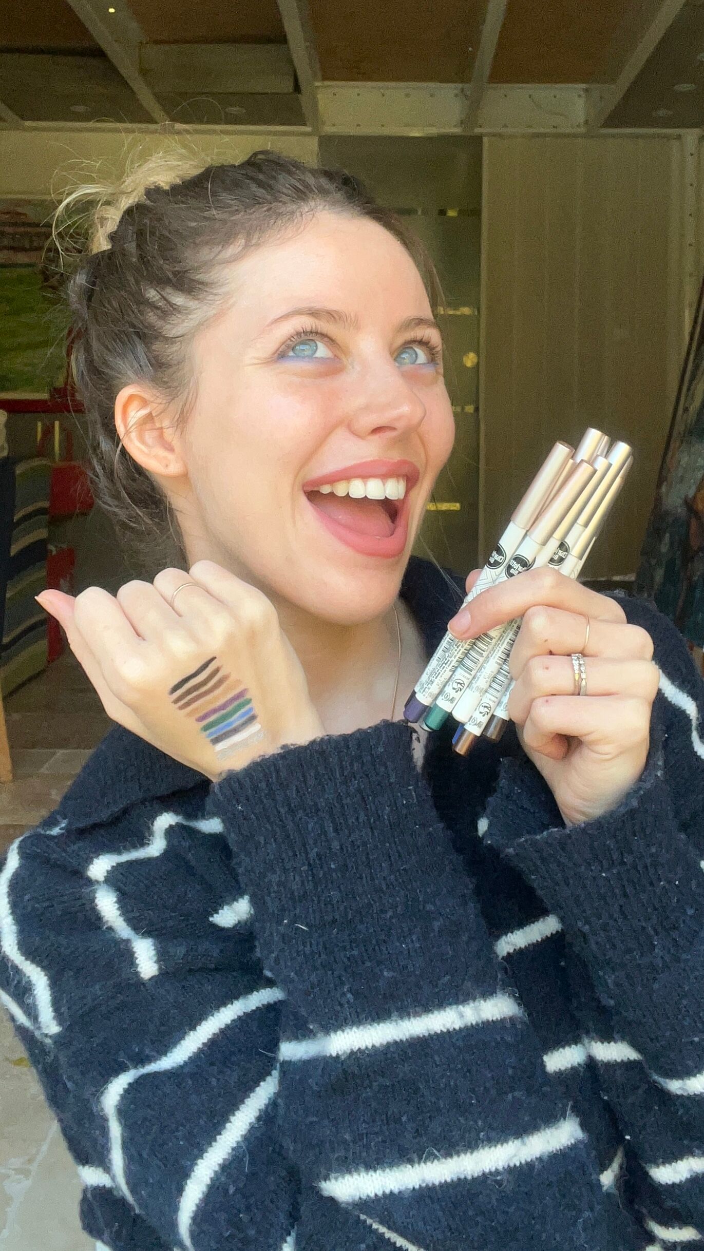 Brauner Augenstift : SIMMONDSIA CHINENSIS (JOJOBA) SEED OIL*, C10-18 TRIGLYCERIDES, COPERNICIA CERIFERA (CARNAUBA) WAX*, SILICA, HYDROGENATED VEGETABLE OIL, CAPRYLIC/CAPRIC TRIGLYCERIDE, POLYGLYCERYL-3 DIISOSTEARATE, ORYZANOL, TOCOPHEROL, GLYCERYL CAPRYLATE, CI 77499 (IRON OXIDES), CI 77491 (IRON OXIDES), CI 77492 (IRON OXIDES), CI 77891 (TITANIUM DIOXIDE).