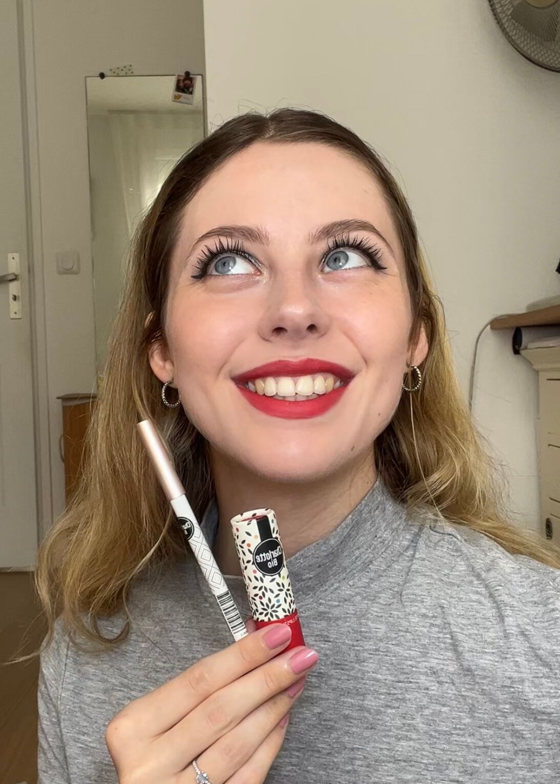 Tragen Sie den Lippenstift zunächst in der Mitte des Mundes auf. Verteilen Sie das Material dann nach außen, so dass alle Lippen gleichmäßig bedeckt sind.