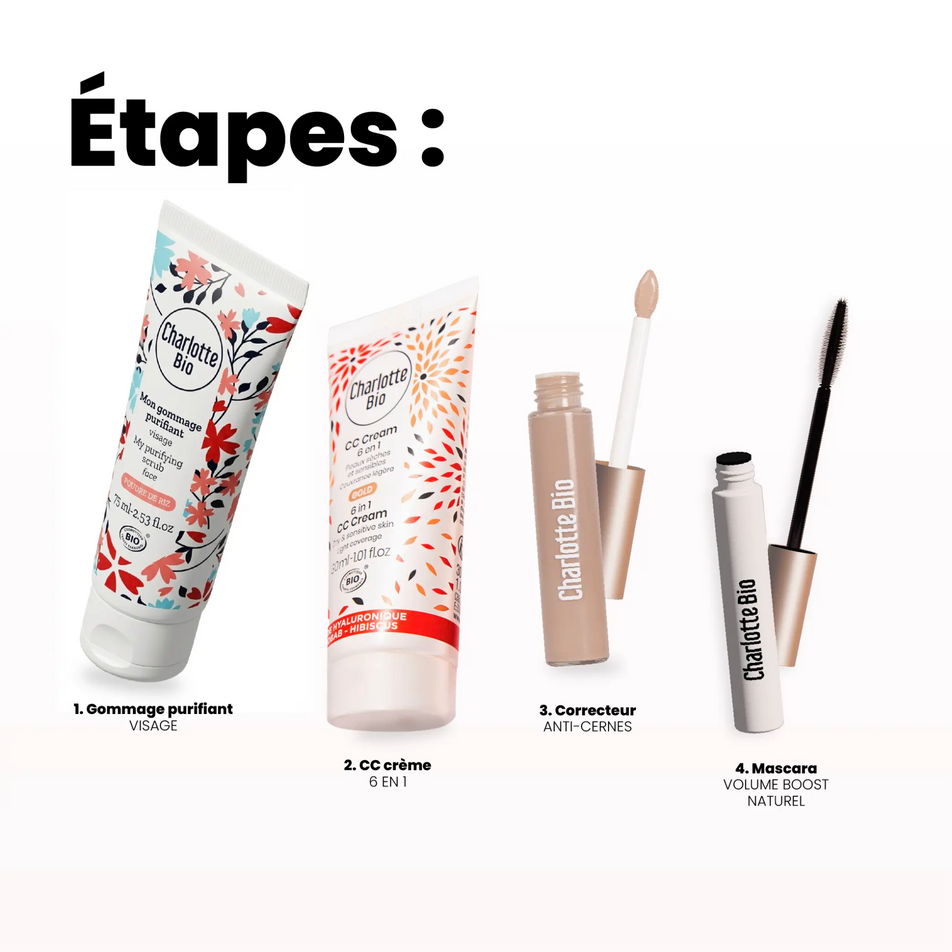 Tragen Sie dann die feuchtigkeitsspendende CC Cream auf das gesamte Gesicht und den Hals auf. Diese Pflege sorgt für einen ebenmäßigen Teint, verleiht Leuchtkraft und bietet eine leichte Deckkraft, während sie die Haut mit Feuchtigkeit versorgt.