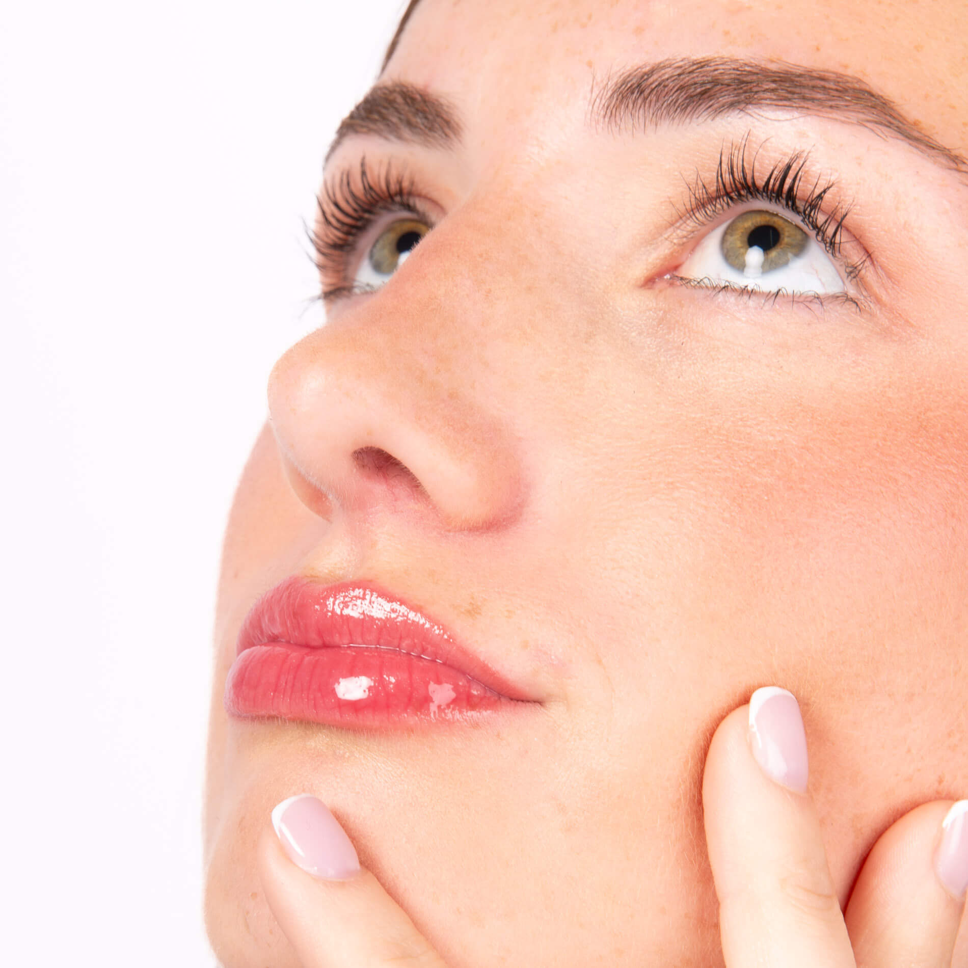 Geben Sie einen Hauch von Highlighter auf die oberen Wangenknochen, den Brauenbogen und die Nasenspitze: Das Geheimnis für sofortigen Glow und einen strahlenden Teint.